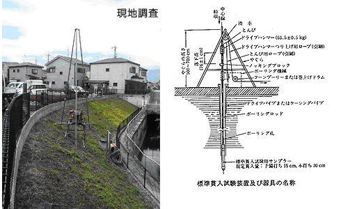 標準貫入試験はJIS A 1219:2001に定められている試験方法で行う、地盤の原位置試験です。